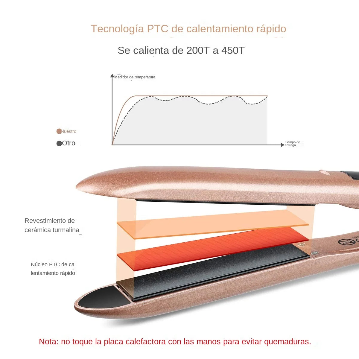 Plancha y rizador de pelo 2 en 1.Para alisar y ondular.